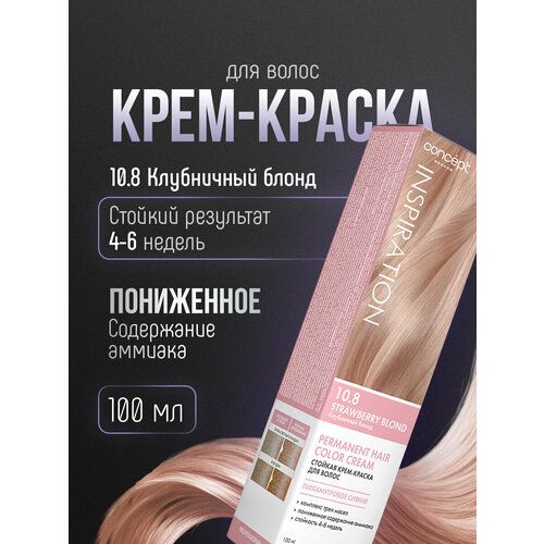 Concept Fusion Inspiration Стойкая крем-краска для волос, тон 10.8 Клубничный блонд / Strawberry Blond. INSPIRATION представляет собой профессиональную линию красителей для волос, разработанную на основе популярной серии фьюжен концепт. Ключевой особенностью профессиональной краски является пониженное содержание аммиака, что делает процесс окрашивания более щадящим для волос. В линейке представлено 20 уникальных оттенков, которые полностью соответствуют последним модным тенденциям в сфере окрашивания.