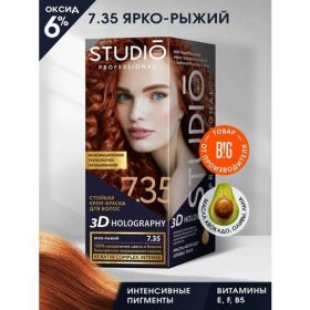 НАЙТИ ВЫГОДНЕЕ - Studio стойкая крем-краска для волос 3Д Голографик 7.35 Ярко-рыжий 50/50/15 мл
