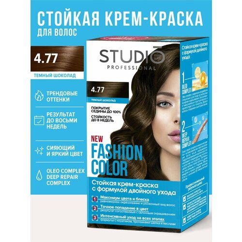 НАЙТИ ВЫГОДНЕЕ - Studio Professional краска для волос Fashion Color 4.77 Тёмный шоколад, 50/50/15 мл