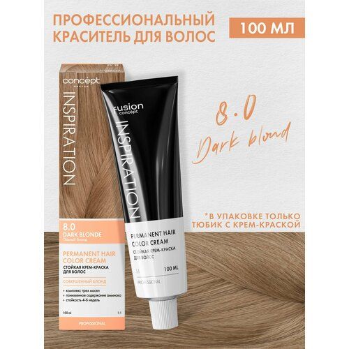 НАЙТИ ВЫГОДНЕЕ - Concept Fusion Краска для волос 8.0 Fusion Темный блонд (Dark Blonde), золотая коллекция, 100мл