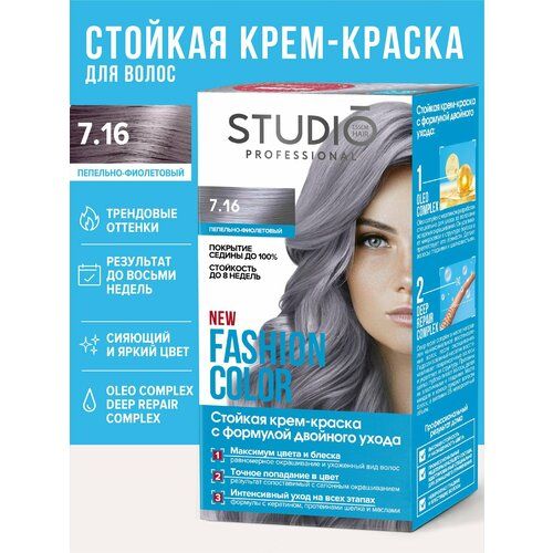 НАЙТИ ВЫГОДНЕЕ - Studio Professional краска для волос Fashion Color 7.16 Пепельно-фиолетовый, 50/50/15 мл
