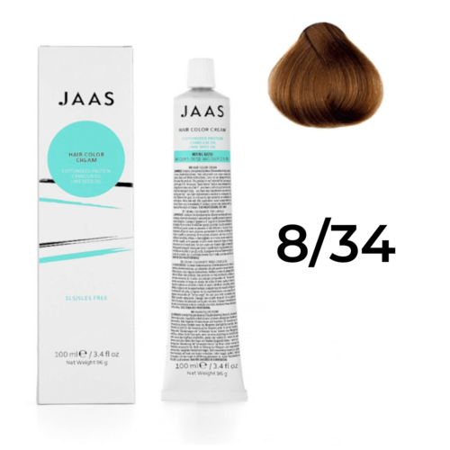 НАЙТИ ВЫГОДНЕЕ - Крем - краска для волос профессиональная Jaas 8/34 Светлый русый Золотисто-медный 100 мл