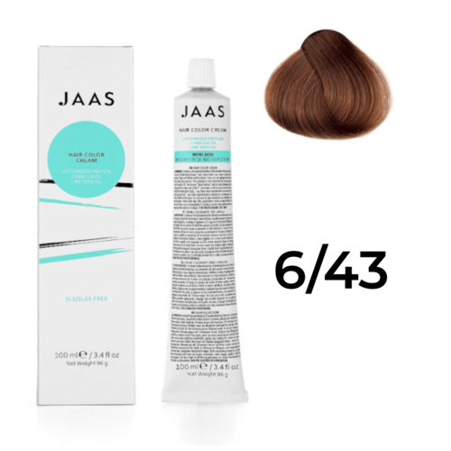 НАЙТИ ВЫГОДНЕЕ - Крем - краска для волос профессиональная Jaas 6/43 Темный русый Медно-золотистый 100 мл