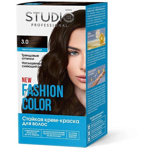 НАЙТИ ВЫГОДНЕЕ - Крем-краска для волос STUDIO FASHION COLOR 50/50/15 мл Тёмно-ка штановый 3.0