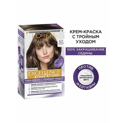 НАЙТИ ВЫГОДНЕЕ - Крем-краска для волос L'Oreal Paris Excellence Color 6.11 Темный русый, 258мл