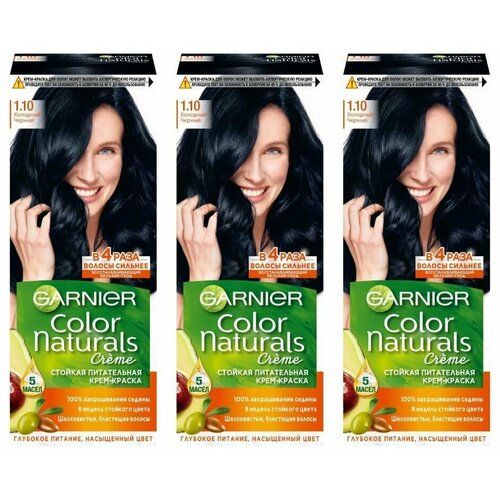 НАЙТИ ВЫГОДНЕЕ - Garnier Стойкая крем-краска для волос Color Naturals, тон 1.10 Холодный черный, 110 мл, 3 шт
