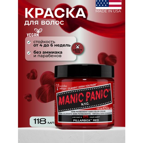 НАЙТИ ВЫГОДНЕЕ - Manic Panic Красная краска для волос профессиональная Classic Pillarbox Red 118 мл пигмент прямого действия