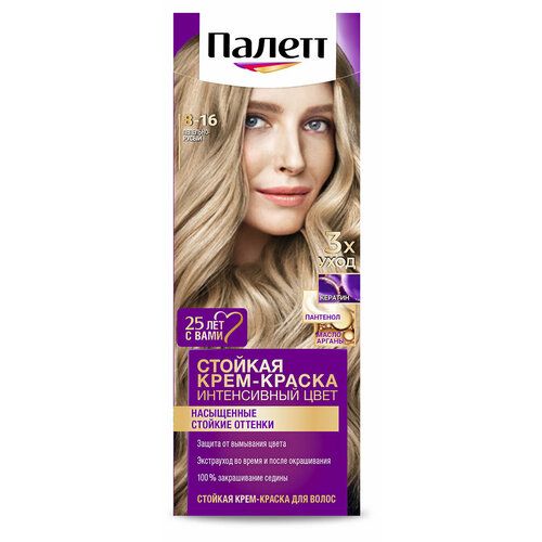 НАЙТИ ВЫГОДНЕЕ - Крем краска стойкая для волос «Палетт», (8-16) Пепельно-русый, защита от вымывания цвета, 110 мл