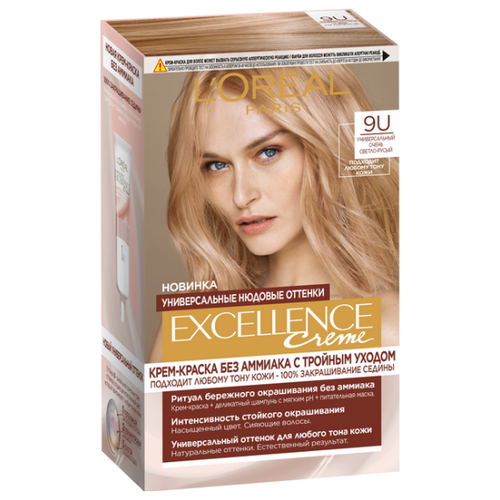 НАЙТИ ВЫГОДНЕЕ - Крем-краска для волос L'oreal Paris Excellence, без аммиака, тон 9U, очень светло-русый
