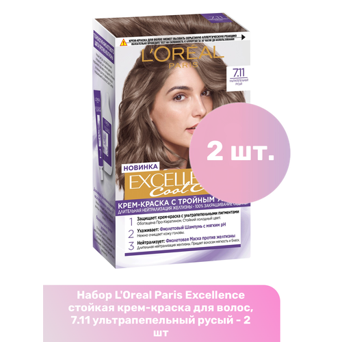 НАЙТИ ВЫГОДНЕЕ - Крем-краска для волос Loreal Paris Excellence Cool Creme 7.11 Ультрапепельный русый 2 шт