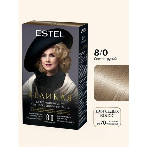 Стойкая крем-краска для седых волос "ESTEL великая" 8/0, светло-русый - это высококачественное средство для окрашивания волос, разработанное профессионалами бренда Estel. Этот продукт предназначен для закрашивания седины и придания волосам насыщенного русого оттенка.