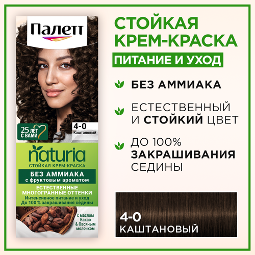 НАЙТИ ВЫГОДНЕЕ - Палетт Naturia Стойкая крем-краска для волос 4-0 Каштановый, 110 мл