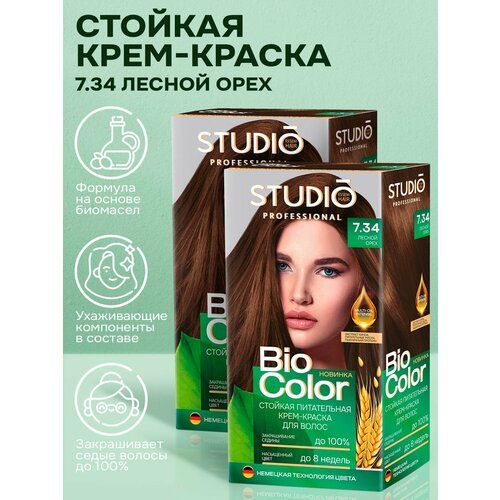 НАЙТИ ВЫГОДНЕЕ - Studio Biocolor Краска для волос 7.34 Лесной орех, 50/50/15 мл - 2 штуки