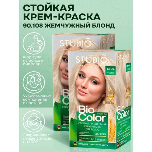 НАЙТИ ВЫГОДНЕЕ - Studio Biocolor Краска для волос 90.108 Жемчужный блондин, 50/50/15 мл - 2 штуки