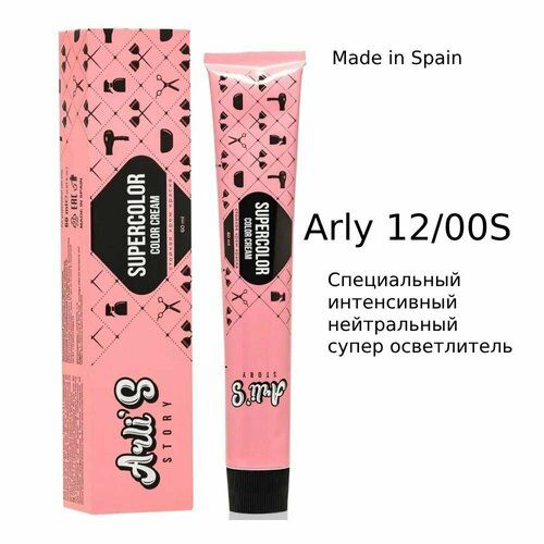 НАЙТИ ВЫГОДНЕЕ - Arli's Story Cтойкая крем-краска для волос с кератином Supercolor Color Cream Arly 12.00S Специальный интенсивный нейтральный супер осветлитель, 60 мл