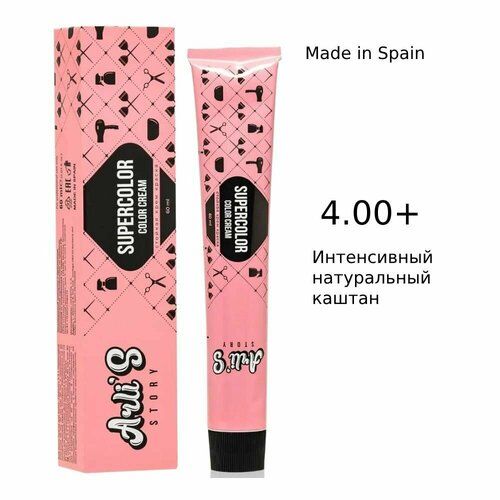НАЙТИ ВЫГОДНЕЕ - Arli's Story Cтойкая крем-краска для волос с кератином Supercolor Color Cream 4.00+ Интенсивный натуральный каштан, 60 мл