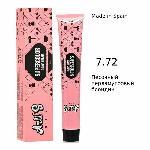 НАЙТИ ВЫГОДНЕЕ - Arli's Story Cтойкая крем-краска для волос с кератином Supercolor Color Cream 7.72 Песочный перламутровый блондин, 60 мл