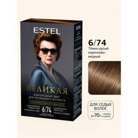 НАЙТИ ВЫГОДНЕЕ - ESTEL Стойкая крем-краска для седых волос Великая тон 6/74 Тёмно-русый коричнево-медный