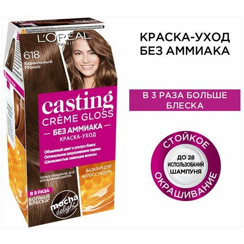 НАЙТИ ВЫГОДНЕЕ - L'Oreal Paris Casting Creme Gloss стойкая краска-уход для волос, 618 ванильный мокко - 1 шт