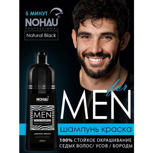 Шампунь краска для волос черная Nohau professional 2в1 - это революционная формула, которая за 5 минут обеспечивает 100% закрашивание седины. Обладает стойким эффектом, который сохраняется по длине от 2 до 6 месяцев. Окрашивание волос превращается в салонную процедуру не выходя из дома. Профессиональный окрашивающий шампунь Nohau бережно окрашивает волосы благодаря входящим в состав масел, подарит вашим волосам соблазнительный естественный цвет и блеск.