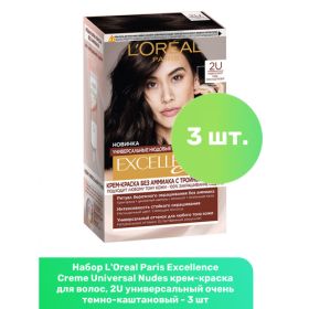 НАЙТИ ВЫГОДНЕЕ - L'Oreal Paris Excellence Creme Universal Nudes крем-краска для волос, 2U универсальный очень темно-каштановый - 3 шт