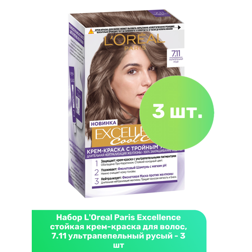 НАЙТИ ВЫГОДНЕЕ - L'Oreal Paris Excellence стойкая крем-краска для волос, 7.11 ультрапепельный русый - 3 шт