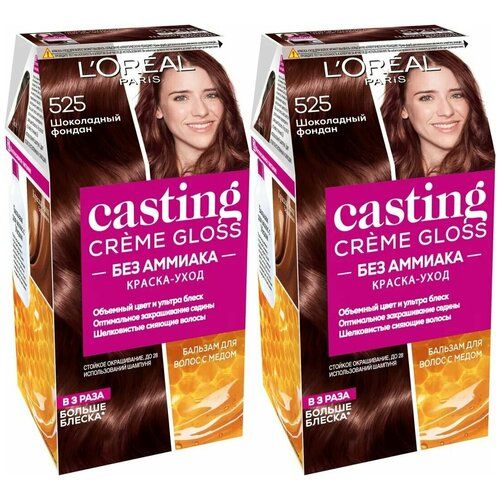 НАЙТИ ВЫГОДНЕЕ - L'Oreal Paris Casting Creme Gloss стойкая краска-уход для волос, 525 Шоколадный фондан - 2 шт