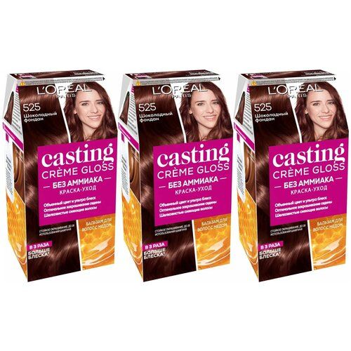 НАЙТИ ВЫГОДНЕЕ - L'Oreal Paris Casting Creme Gloss стойкая краска-уход для волос, 525 Шоколадный фондан - 3 шт