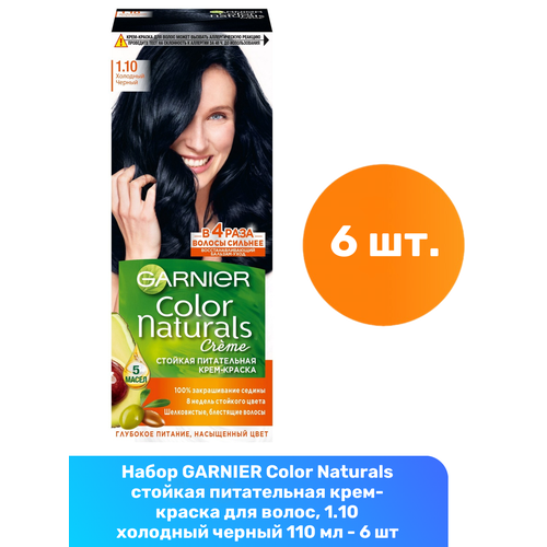 НАЙТИ ВЫГОДНЕЕ - GARNIER Color Naturals стойкая питательная крем-краска для волос, 1.10 холодный черный 110 мл - 6 шт