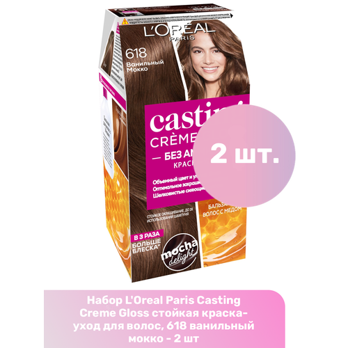НАЙТИ ВЫГОДНЕЕ - L'Oreal Paris Casting Creme Gloss стойкая краска-уход для волос, 618 ванильный мокко - 2 шт