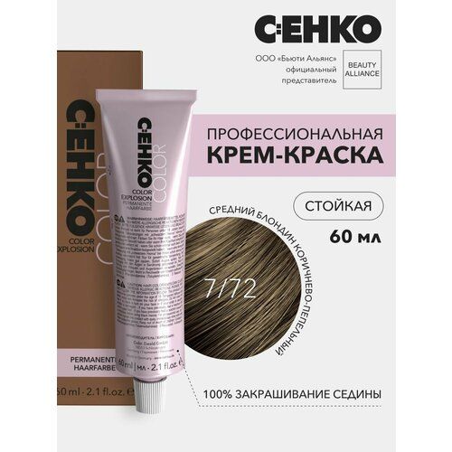 Профессиональная крем - краска для волос немецкого бренда C: EHKO (цеко) обеспечит безупречное окрашивание и стойкий результат. Этот производитель имеет более 80 лет опыта в разработках продукции для парикмахеров, салонов и домашнего ухода. При использовании таких косметических средств гарантировано качество и предсказуемый результат. Благодаря натуральному тону краски 7/72 Средний блондин коричнево-пепельный и рекомендациям в инструкции вы сможете получить на своих волосах разные, подходящие именно вам, оттенки. Перманентный краситель способствует безупречному покрытию. При соблюдении инструкции обеспечено 100% закрашивание седины. В составе краски содержится аммиак. Формула обогащена рядом ценных компонентов, среди которых миндальный протеин и масло жожоба, витамин С и гидролизованный кератин. За счет этого в процессе покраски волосам обеспечены забота и бережный уход. Именно благодаря таким особенностям, продукция с высоким процентом масел в составе является популярной не только среди профессионалов, но и всех женщин. Она представлена в широкой палитре натуральных, стойких оттенков (117 тонов). Краситель выпускается в удобном тюбике. Использовать его следует вместе с оксигеном (окислителем) CEHKO PEROXAN, смешивая в пропорциях 1:1. При окраске локонов с пористой, поврежденной структурой перед процедурой рекомендуется нанести защитную сыворотку STRUKTUR SERUM C: EHKO. Краска прямого действия может использоваться для окрашивания отросших корней и женских волос на голове по всей длине. Она непременно подарит элегантный блеск и насыщенный цвет, красоту и здоровье. Продукция с уходовыми компонентами является универсальным выбором как для блондинок, так и брюнеток. Среди предложенного ассортимента каждая девушка сможет подобрать подходящий светлый и темный оттенок, исходя из личных предпочтений и преследуемых целей. У нас есть акции и распродажи, вы можете купить наши товары в подарок со скидкой