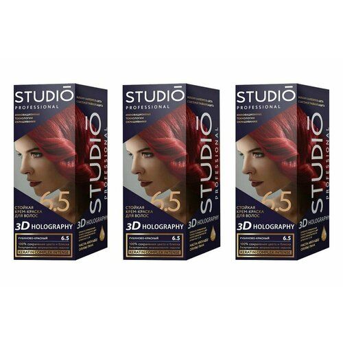 НАЙТИ ВЫГОДНЕЕ - Стойкая крем-краска для волос Studio 3D Holography, тон 6.5 Рубиново-красный, 115 мл, 3 шт