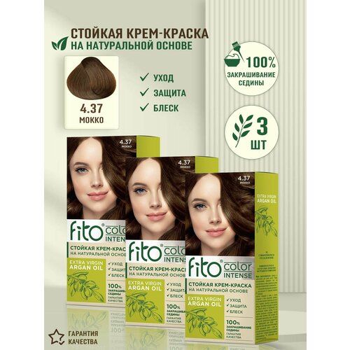 НАЙТИ ВЫГОДНЕЕ - Стойкая крем-краска для волос Fito Color Intense, 4.37 Мокко Fito Косметик, 3 шт по 115 мл