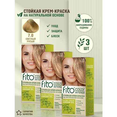 НАЙТИ ВЫГОДНЕЕ - Стойкая крем-краска для волос Fito Color Intense, 7.0 Светлый русый Fito Косметик, 3 шт по 115 мл