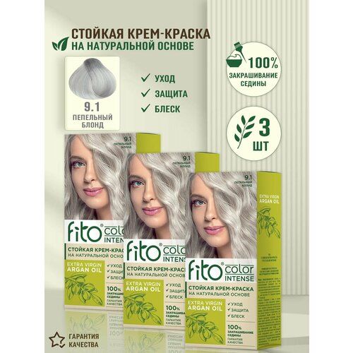 НАЙТИ ВЫГОДНЕЕ - Стойкая крем-краска для волос Fito Color Intense, 9.1 Пепельный блонд Fito Косметик, 3 шт по 115 мл