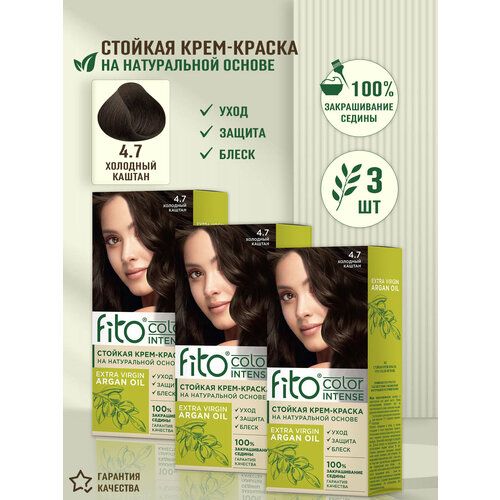 НАЙТИ ВЫГОДНЕЕ - Стойкая крем-краска для волос Fito Color Intense, 4.7 Холодный каштан Fito Косметик, 3 шт по 115 мл