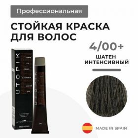 НАЙТИ ВЫГОДНЕЕ - HIPERTIN Краска для волос профессиональная Utopik Altamente 4/00+ шатен интенсивный, стойкая, перманентная русый, крем-краска тонирующая для седых волос, мужская женская несмываемая, краситель 60 мл