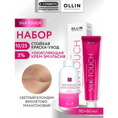 НАЙТИ ВЫГОДНЕЕ - Набор для волос OLLIN PROFESSIONAL Silk Touch: эмульсия 3% + краска 10/25 светлый блондин фиолетово-махагоновый 90+60 мл