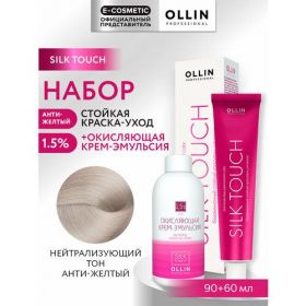 НАЙТИ ВЫГОДНЕЕ - Набор для волос OLLIN PROFESSIONAL Silk Touch: эмульсия 1,5% + краска нейтрализующая тон анти-желтый, 60+90 мл