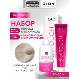 НАЙТИ ВЫГОДНЕЕ - Набор для окрашивания волос OLLIN PROFESSIONAL Silk Touch: эмульсия 3 % + краска нейтрализующая тон анти-желтый 60+90 мл