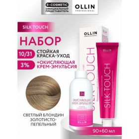 НАЙТИ ВЫГОДНЕЕ - Набор для волос OLLIN PROFESSIONAL Silk Touch: эмульсия 3% + краска 10/31 светлый блондин золотисто-пепельный, 90+60 мл