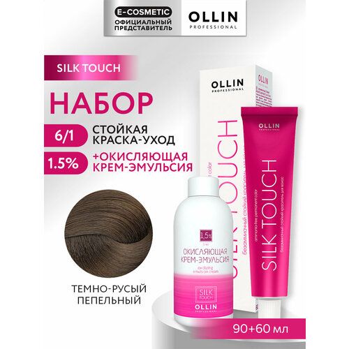 НАЙТИ ВЫГОДНЕЕ - Набор для окрашивания волос OLLIN PROFESSIONAL Silk Touch: эмульсия 1,5 % + краска 6/1 темно-русый пепельный 60+90 мл
