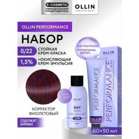 НАЙТИ ВЫГОДНЕЕ - Набор для волос OLLIN PROFESSIONAL Performance: краска 0/22 корректор фиолетовый + эмульсия 1,5 %, 60+90 мл