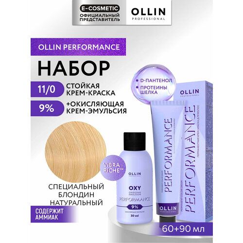 НАЙТИ ВЫГОДНЕЕ - Набор для волос OLLIN PROFESSIONAL Performance: краска 11/0 специальный блондин натуральный + эмульсия 9 %, 60+90 мл