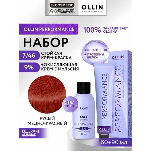 НАЙТИ ВЫГОДНЕЕ - Набор для волос OLLIN PROFESSIONAL Performance: краска 7/46 русый медно-красный + эмульсия 9 %, 60+90 мл