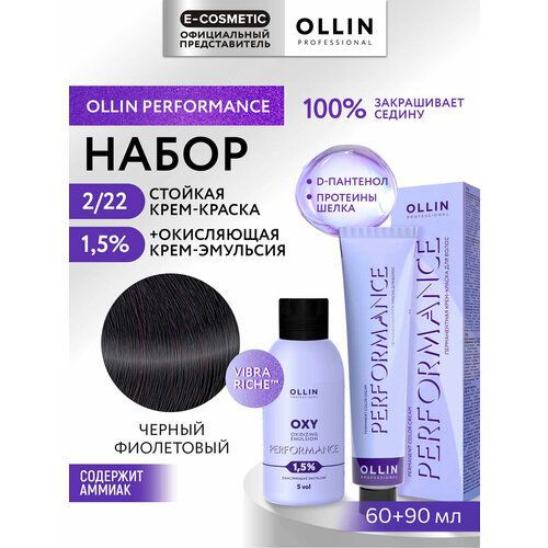 НАЙТИ ВЫГОДНЕЕ - Набор для волос OLLIN PROFESSIONAL Performance: краска 2/22 черный фиолетовый + эмульсия 1,5 %, 60+90 мл