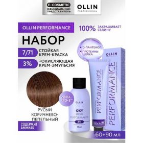 НАЙТИ ВЫГОДНЕЕ - Набор для волос OLLIN PROFESSIONAL Performance: краска 7/71 русый коричнево-пепельный + эмульсия 3 %, 60+90 мл