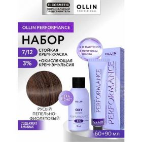 НАЙТИ ВЫГОДНЕЕ - Набор для волос OLLIN PROFESSIONAL Performance: краска 7/12 русый пепельно-фиолетовый + эмульсия 3 %, 60+90 мл