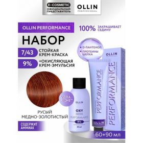 НАЙТИ ВЫГОДНЕЕ - Набор для волос OLLIN PROFESSIONAL Performance: краска 7/43 русый медно-золотистый + эмульсия 9 %, 60+90 мл