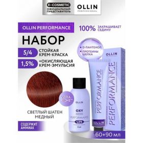 НАЙТИ ВЫГОДНЕЕ - Набор для волос OLLIN PROFESSIONAL Performance: краска 5/4 светлый шатен медный + эмульсия 1,5 %, 60+90 мл